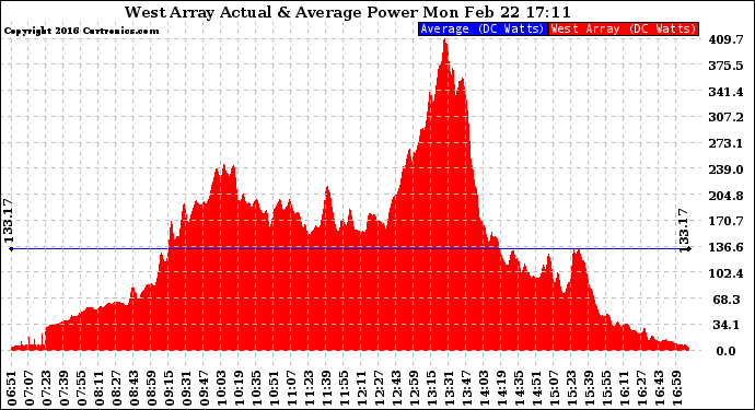 20160222 West Array Actual & Average Power Output