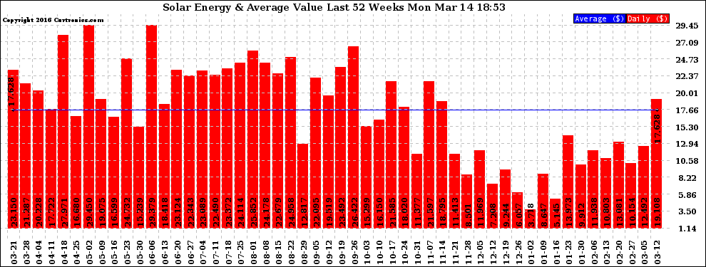 20160314 Weekly Solar Energy Production Value Last 52 Weeks