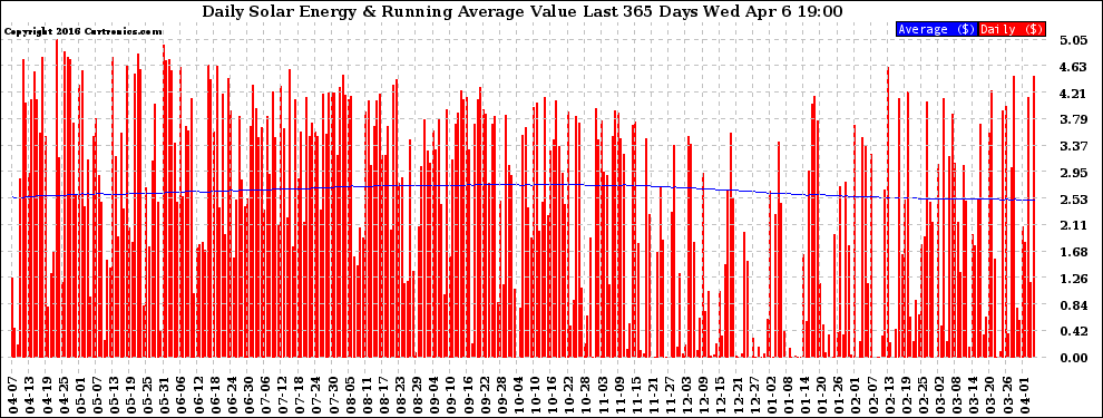 20160406 Daily Solar Energy Production Value Running Average Last 365 Days