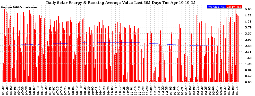 20160419 Daily Solar Energy Production Value Running Average Last 365 Days