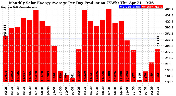 20160421 Monthly Solar Energy Production Average Per Day (KWh)