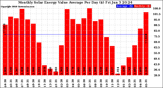 20160603 Monthly Solar Energy Value Average Per Day ($)