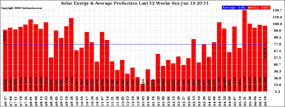 20160619 Weekly Solar Energy Production Last 52 Weeks