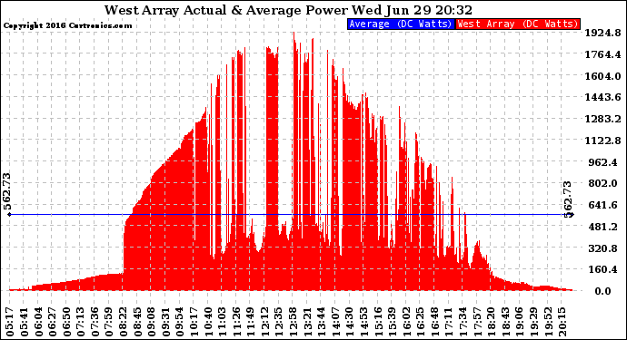 20160629 West Array Actual & Average Power Output