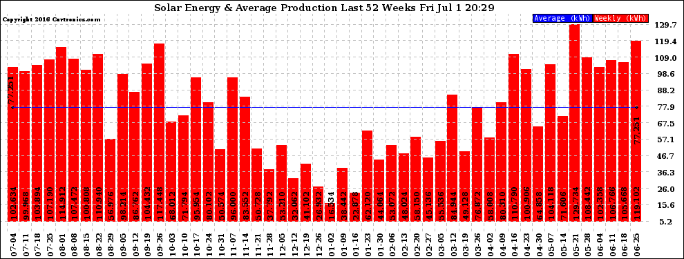 20160701 Weekly Solar Energy Production Last 52 Weeks