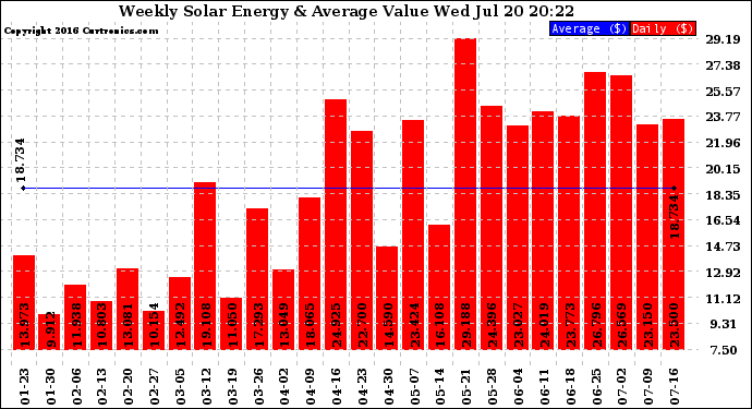 20160720 Weekly Solar Energy Production Value