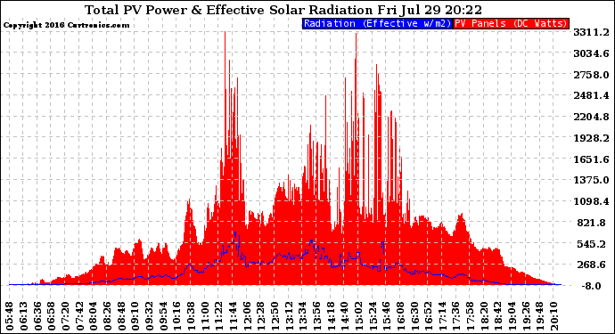 20160729 Total PV Panel Power Output & Effective Solar Radiation