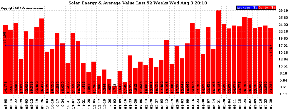 20160803 Weekly Solar Energy Production Value Last 52 Weeks