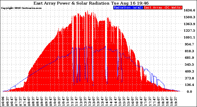 20160816 East Array Power Output & Solar Radiation