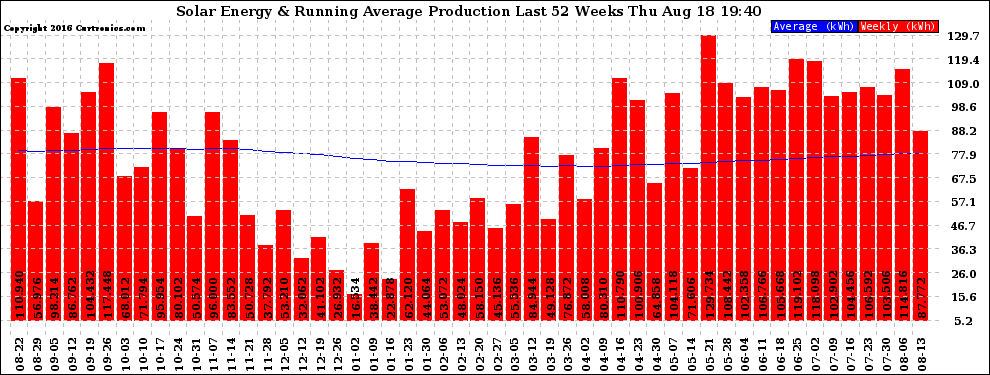 20160818 Weekly Solar Energy Production Running Average Last 52 Weeks