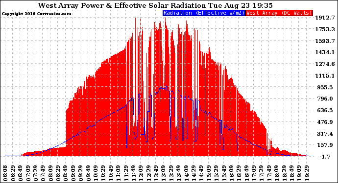 20160823 West Array Power Output & Effective Solar Radiation