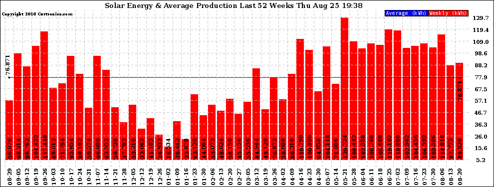 20160825 Weekly Solar Energy Production Last 52 Weeks
