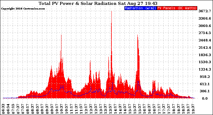 20160827 Total PV Panel Power Output & Solar Radiation