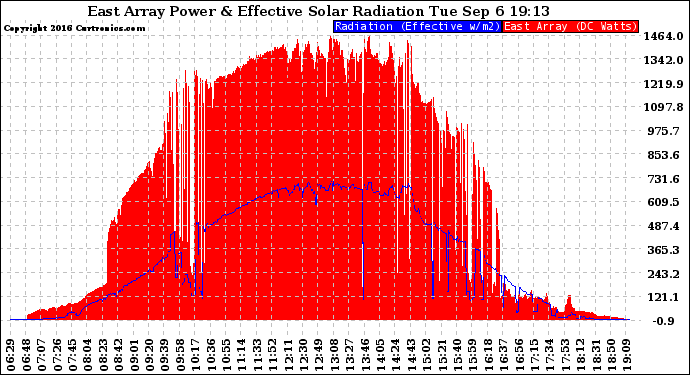 20160906 East Array Power Output & Effective Solar Radiation