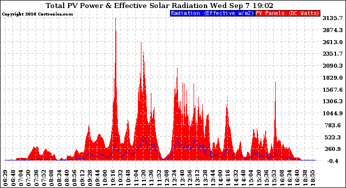 20160907 Total PV Panel Power Output & Effective Solar Radiation