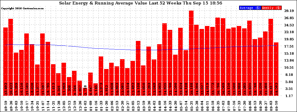 20160915 Weekly Solar Energy Production Value Running Average Last 52 Weeks
