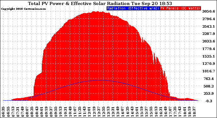 20160920 Total PV Panel Power Output & Effective Solar Radiation