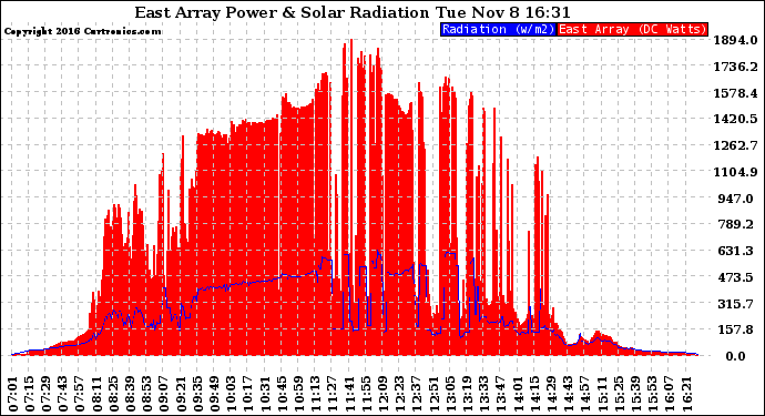 20161108 East Array Power Output & Solar Radiation