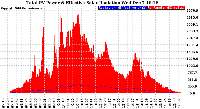20161207 Total PV Panel Power Output & Effective Solar Radiation