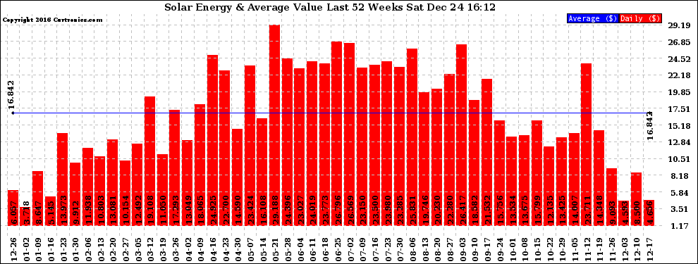 20161224 Weekly Solar Energy Production Value Last 52 Weeks