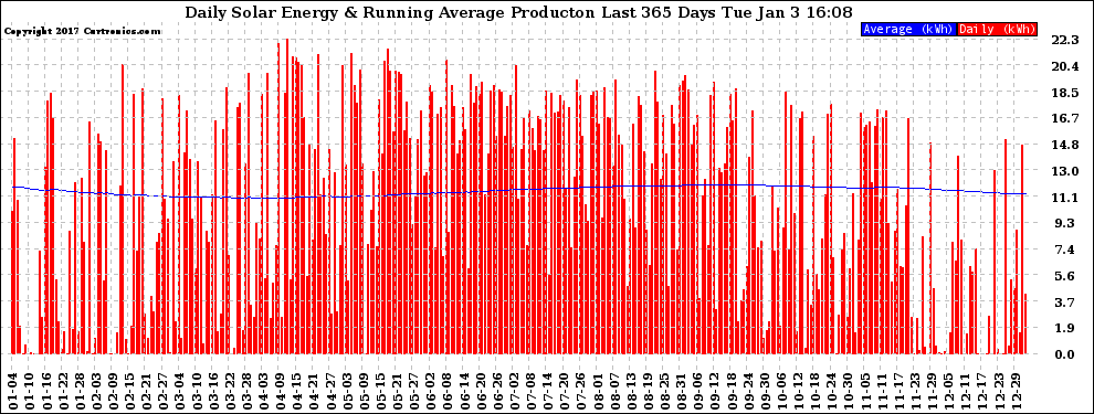 20170103 Daily Solar Energy Production Running Average Last 365 Days