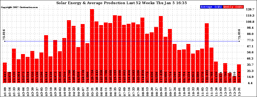 20170105 Weekly Solar Energy Production Last 52 Weeks