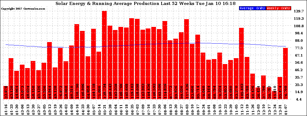 20170110 Weekly Solar Energy Production Running Average Last 52 Weeks