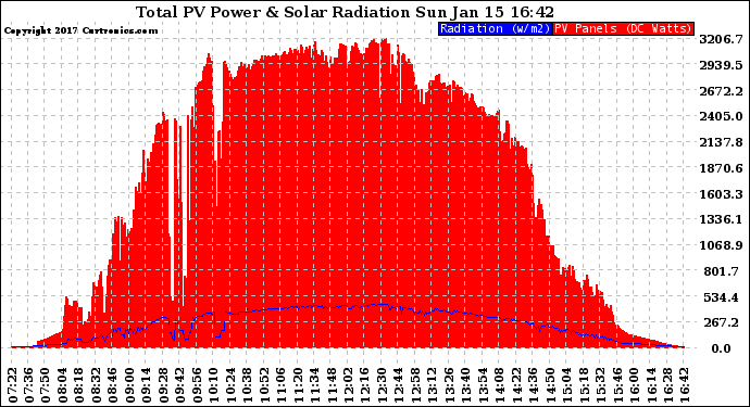 20170115 Total PV Panel Power Output & Solar Radiation