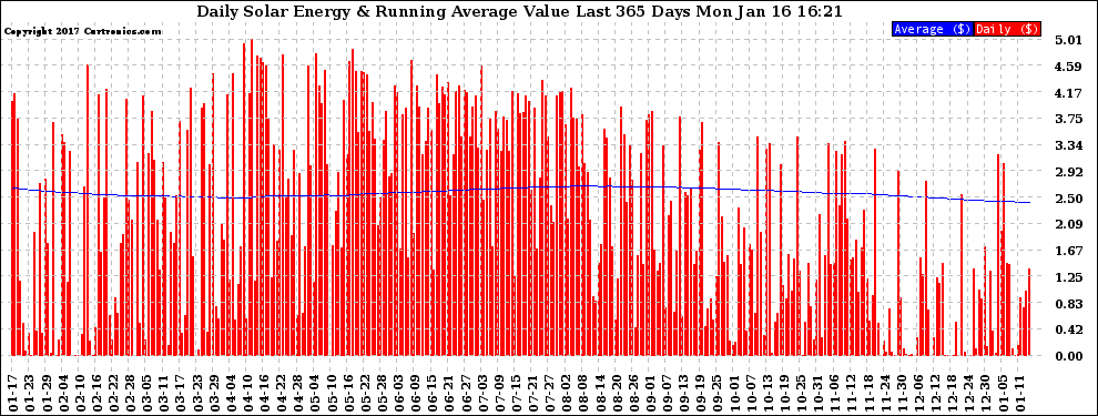 20170116 Daily Solar Energy Production Value Running Average Last 365 Days