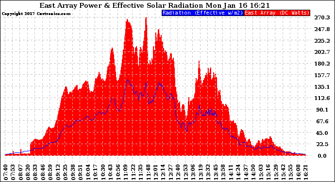 20170116 East Array Power Output & Effective Solar Radiation