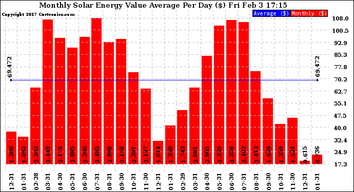20170203 Monthly Solar Energy Value Average Per Day ($)