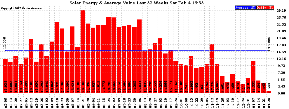 20170204 Weekly Solar Energy Production Value Last 52 Weeks