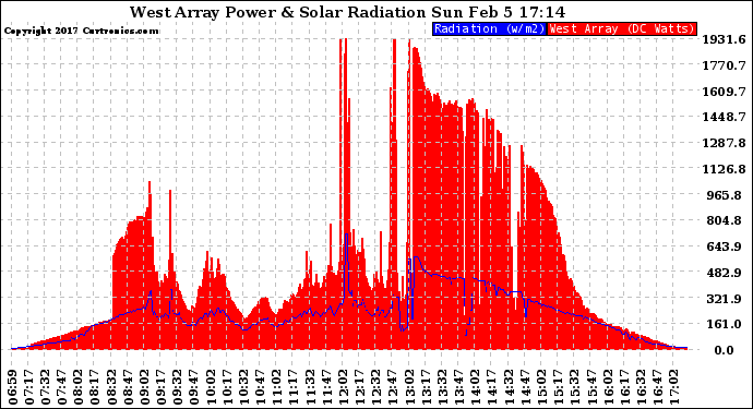 20170205 West Array Power Output & Solar Radiation