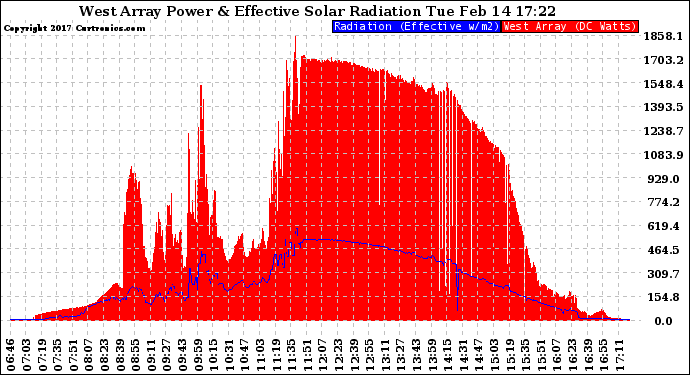20170214 West Array Power Output & Effective Solar Radiation