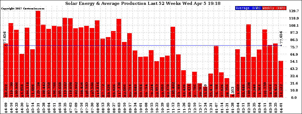 20170405 Weekly Solar Energy Production Last 52 Weeks