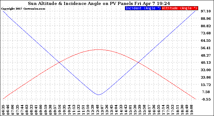 20170407 Sun Altitude Angle & Sun Incidence Angle on PV Panels