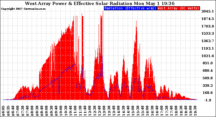 20170501 West Array Power Output & Effective Solar Radiation