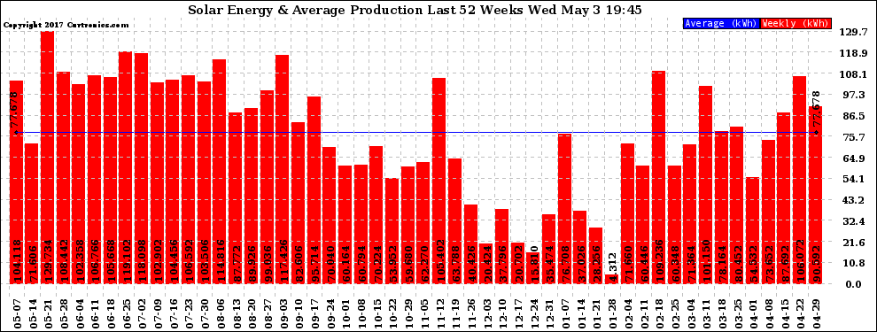 20170503 Weekly Solar Energy Production Last 52 Weeks