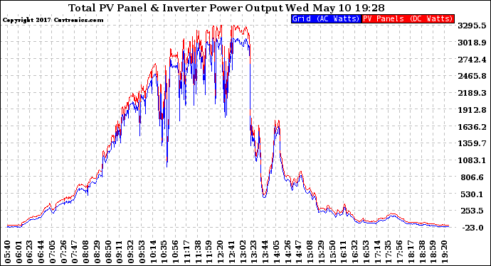 20170510 PV Panel Power Output & Inverter Power Output