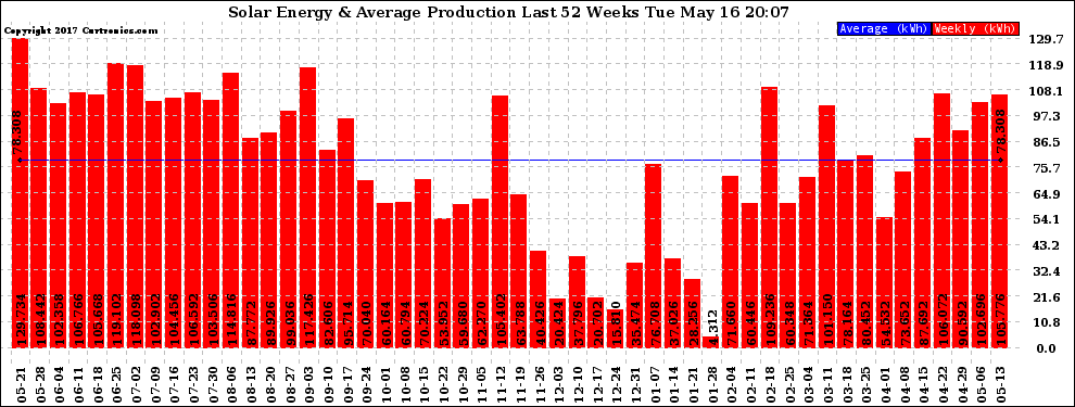 20170516 Weekly Solar Energy Production Last 52 Weeks