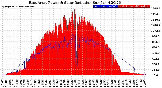 20170604 East Array Power Output & Solar Radiation