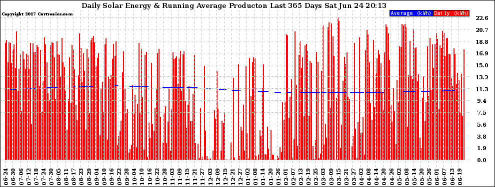 20170624 Daily Solar Energy Production Running Average Last 365 Days