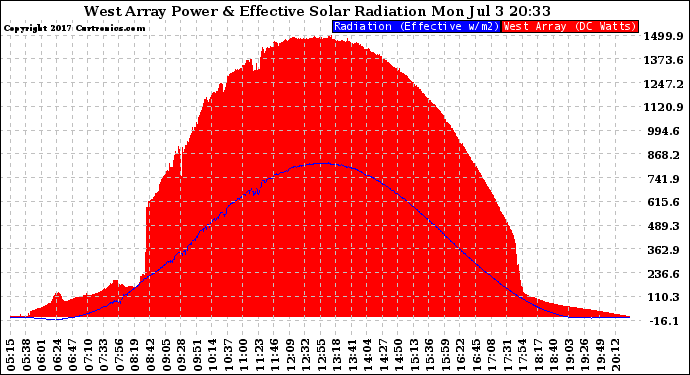 20170703 West Array Power Output & Effective Solar Radiation