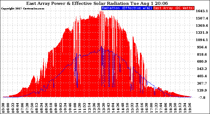 20170801 East Array Power Output & Effective Solar Radiation