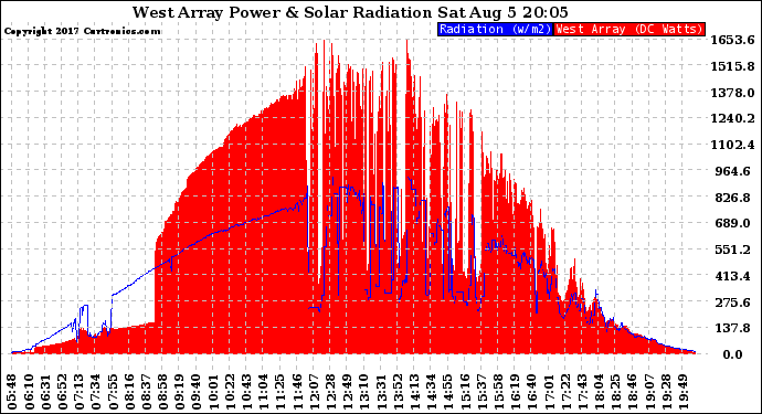 20170805 West Array Power Output & Solar Radiation