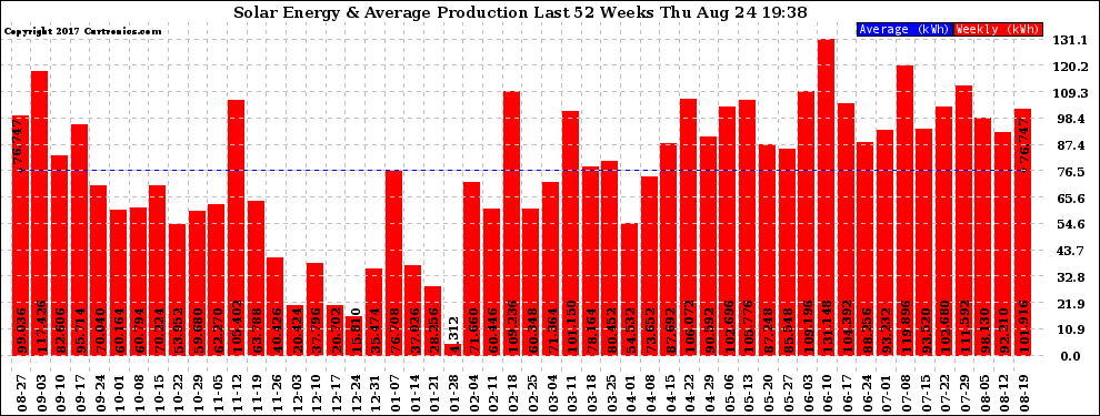 20170824 Weekly Solar Energy Production Last 52 Weeks