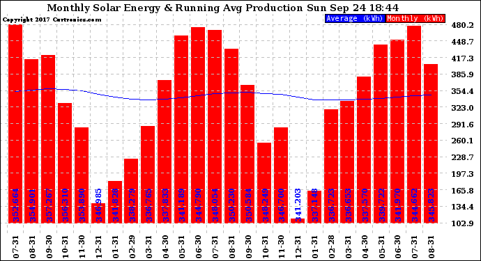 20170924 Monthly Solar Energy Production Running Average