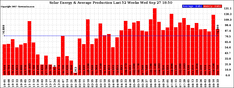 20170927 Weekly Solar Energy Production Last 52 Weeks