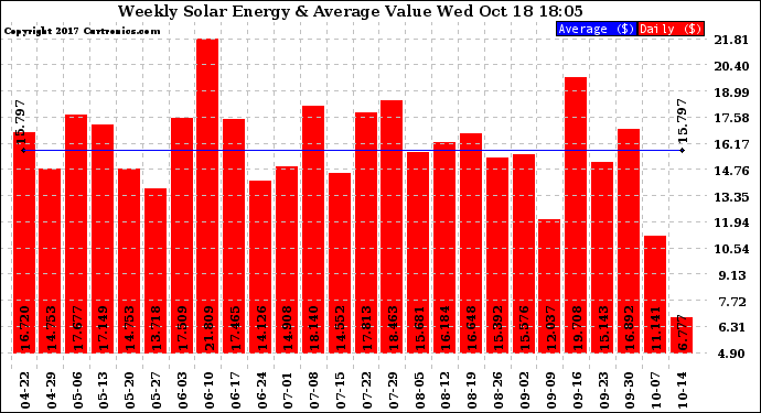 20171018 Weekly Solar Energy Production Value