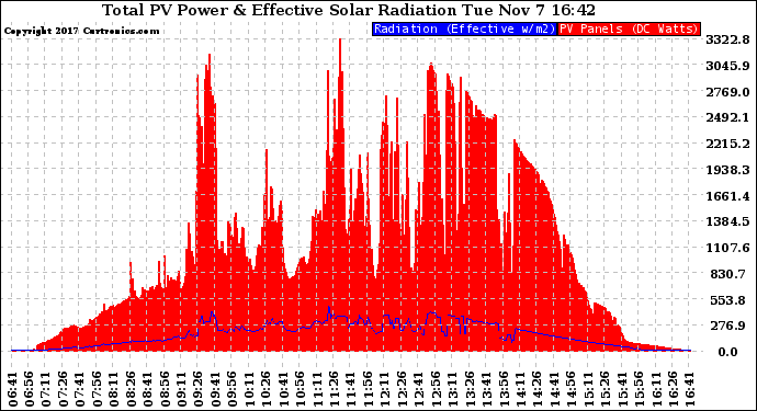 20171107 Total PV Panel Power Output & Effective Solar Radiation